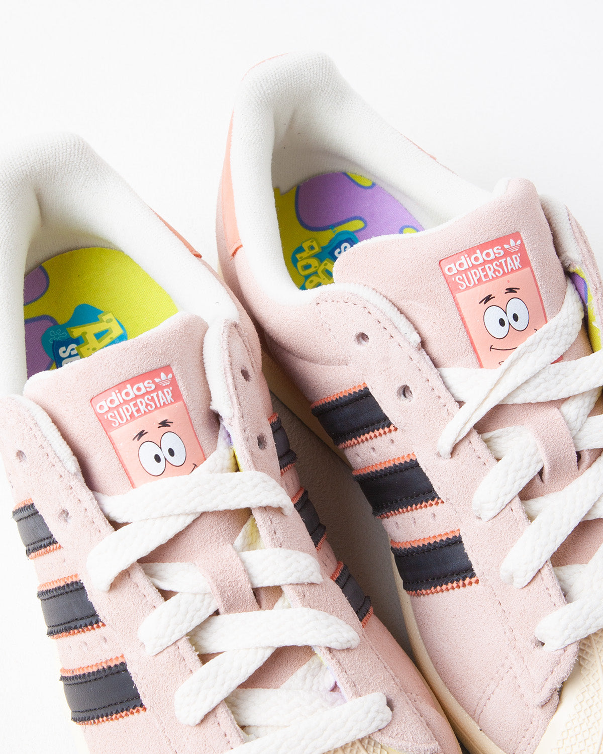 The adidas Superstar x SpongeBob Squarepants Patrick Star features a full-grain leather upper with playful character graphics and tonal overlays for subtle texture and visual depth. This collaboration reimagines the iconic Superstar silhouette, merging its storied basketball heritage with whimsical animation influences. A cushioned midsole and classic lace-up fit deliver reliable comfort and everyday wearability.