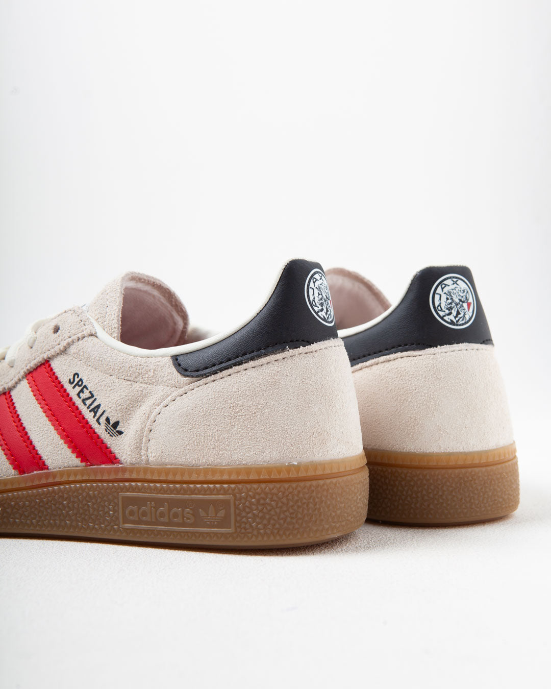 Constructed with a soft suede upper and smooth leather accents, the adidas x Ajax Handball Spezial is defined by its refined texture and considered off white and red palette. Rooted in indoor sport, the Spezial silhouette is reworked through the lens of Ajax heritage, balancing archival influence with a contemporary lifestyle sensibility. A lace up closure and gum rubber outsole provide a secure fit and reliable traction for everyday wear.