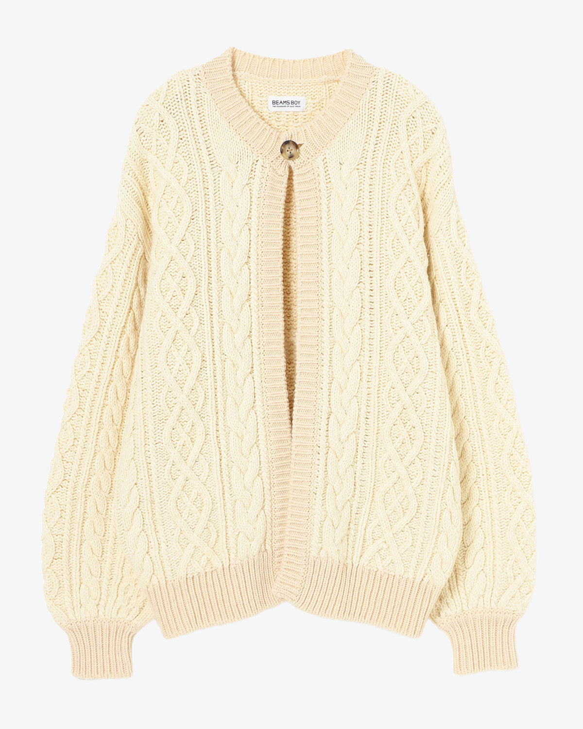 The Beams Boy O.3G 2Tone Alan Cardigan Ivory is knitted from a soft wool blend with subtle tonal variation for texture and depth. Drawing on classic collegiate and workwear knitwear, the cardigan balances heritage detailing with contemporary proportions. A relaxed fit and button front make it suitable for layering or standalone styling across seasons.